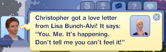 Chris: Since we're all adults here, and seeing as how story progression informed me that you're pregnant again and this time by V.J., I think it's better that we clear things up once and for all. I think it's better if we can be just friends.