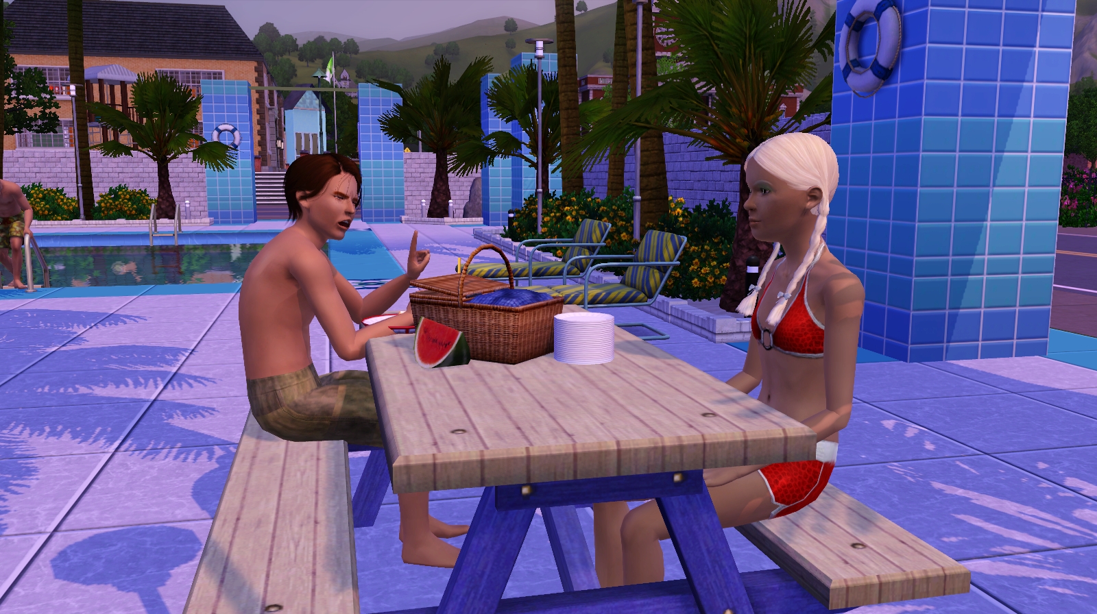 In one of his daily visits to the park, Chris met Lisa again. I'm think she's stalking him, but since she's the one who keeps his social bar green, I'm not too worried. He now has the wish to be friends with her, so I spammed her with a lot of friendly interactions. One of those was consider attractiveness.